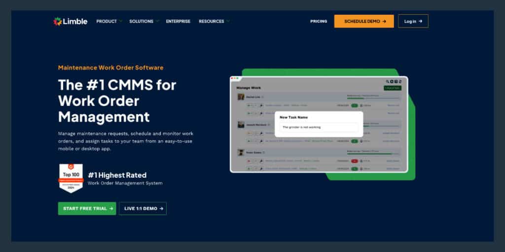Limble is a CMMS with the goal of optimizing maintenance processes. The product boasts AI-integration and predictive maintenance abilities that enhance its other core offerings, including asset & work order management, spare parts inventory, reports & dashboards, and resource planning.
