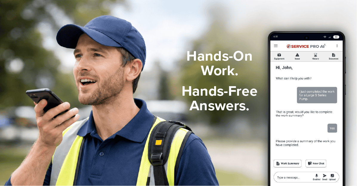 Service Pro AI is an AI-powered companion application for field technicians. It accelerates troubleshooting, automates service documentation, and provides accurate answers that pull directly from your equipment manuals, asset history, and service data.
