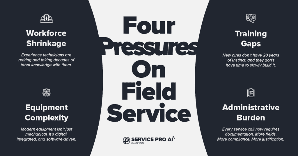 The workforce is shrinking. Experienced technicians are retiring and taking decades of tribal knowledge with them. The people who know that a specific chiller model throws a false E-401 code when the ambient sensor drifts — that knowledge walks out the door when they do.