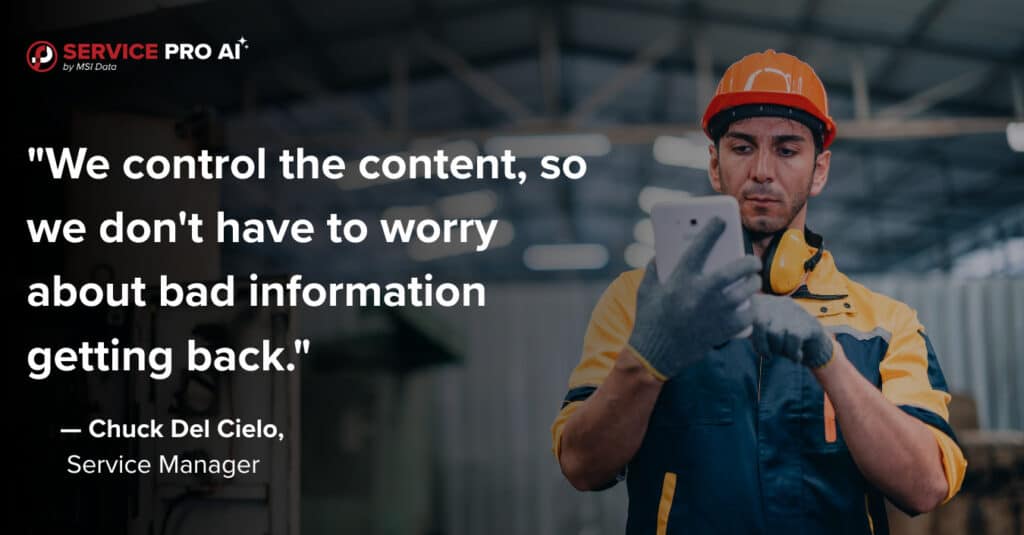Service Pro AI works differently. You control the data. Your equipment manuals, your work history, your service notes, your knowledge articles. The AI only pulls from what you’ve uploaded and configured. No random results from the internet. No fabricated answers. Just trusted, accurate information grounded in your own service data.