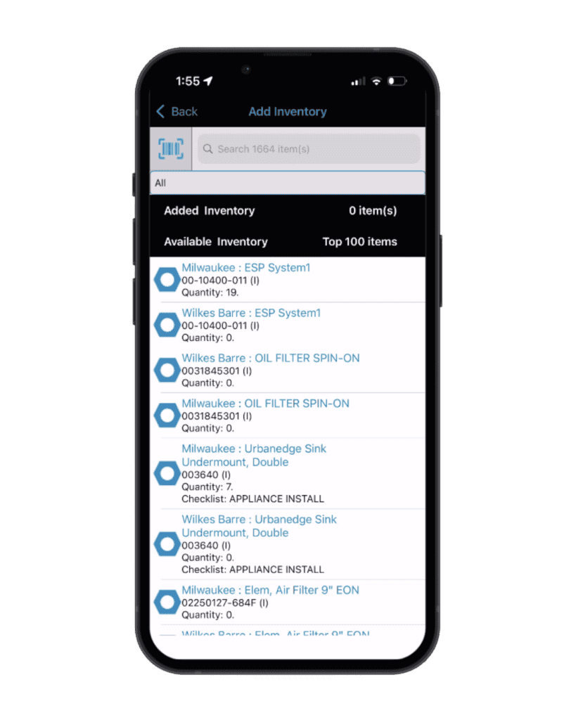 • Mobile Inventory Availability and Parts Recording for Service Techs